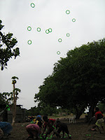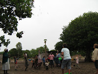 Depois da peça veio o almoço! A seguir, a música e as danças... e, por fim, a distribuição dos cabazes de Natal. Toalhas, sabões, bacias, rebuçados e chupa-chupas fizeram a alegria das crianças! Em dia de festa pouquíssimos foram os que falatarm. Era festa, não havia desculpa!
