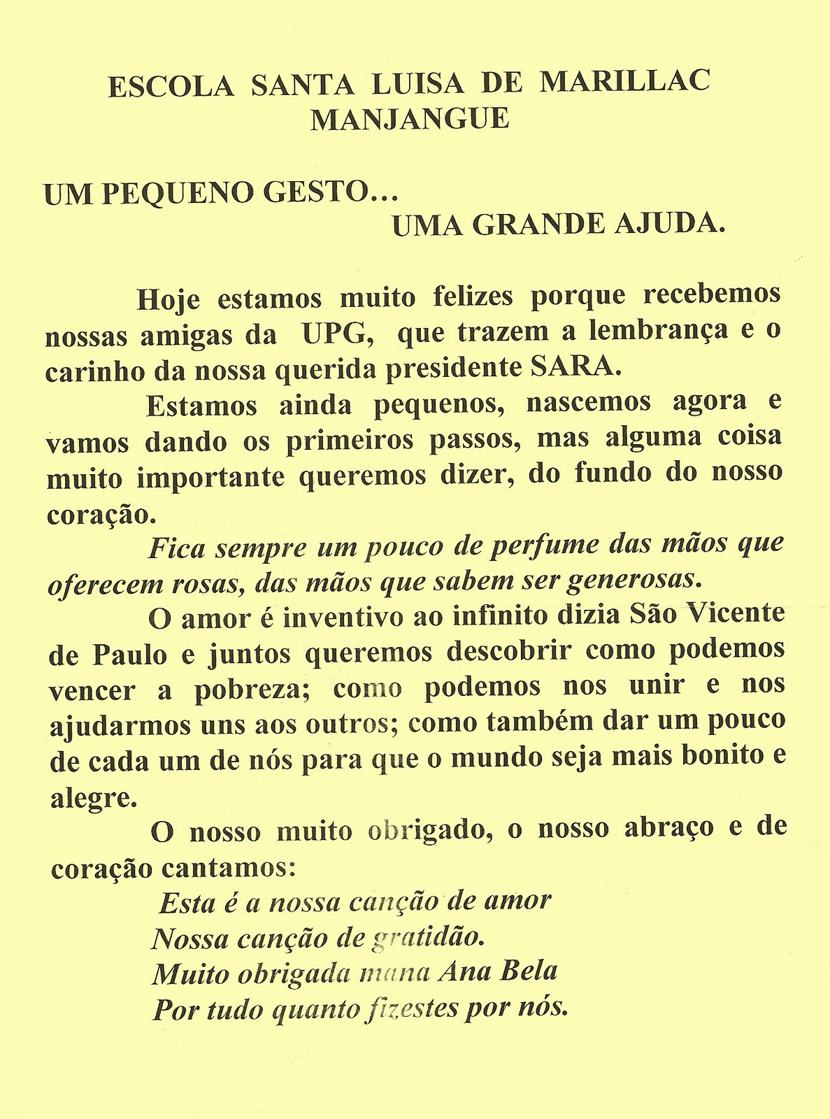 A Directora de Apadrinhamento da UPG, Anabela Nina, esteve na última semana de visita a Moçambique. De Xai-Xai a Chongoene, de Chokwè a Manjangue, passou pelos projectos de Nhancutse, Banhine, São Vicente de Paulo, Santa Luísa de Marillac, Escolinha do André, Escolinha Flor da Infância e, por fim, da Missão de Chongoene (Nhampfumine, Cumine e Santuário).