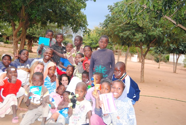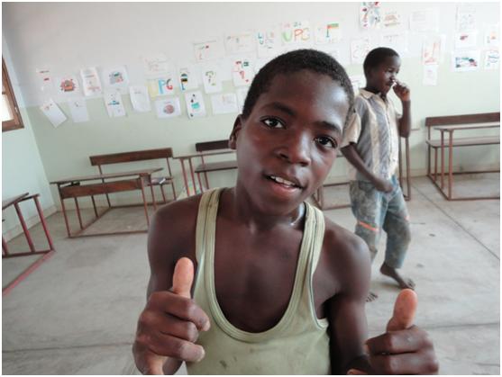 Fomos recebidas de braços abertos (mesmo!) pela Irmã Aparecida. Ficámos logo à vontade com esta Irmã brasileira, alta, efusiva, com uma boa disposição e entusiasmo contagiantes. (...) Visitámos a horta, que lá se chama machamba, comemos laranjas e tangerinas deliciosas, e seguimos para ver o furo de água (não financiado pela UPG) (...). De caminho, parámos na cubata da “Vovó Ana”, foi atropelada e perdeu a capacidade de andar. Tudo o que ela tem na vida está naquela cubata e dela não consegue sair, se não fosse a ajuda que recebe não tinha forma sequer de procurar alimentos. Assim, está perto da missão, as irmãs olham por ela e cuidam não só da sua alimentação mas também lhe fazem companhia. Com a boa disposição da irmã Aparecida a “Vovó Ana” sorriu, tirou fotografias connosco e falou muito, para nossa grande frustração que não percebemos nada! A seguir fomos então visitar a escola, um edifício baixo e comprido como as casas do Alentejo, cá fora o chão batido e um grupo atarefado de rapazes e raparigas talvez entre os 8 e os 14 anos de idade. Em frente deles a Eunice, a recém chegada voluntária que estava a acabar um jogo cujo objectivo era dar-lhes umas noções de aritmética. Eles estavam todos com números pendurados ao pescoço, num frenesim para se agruparem por números pares e ímpares ou algo do género. Já chegamos no fim do dia deles, assim passado um bocado entregaram os números deles e foram-se embora. Ficaram então os pequeninos...